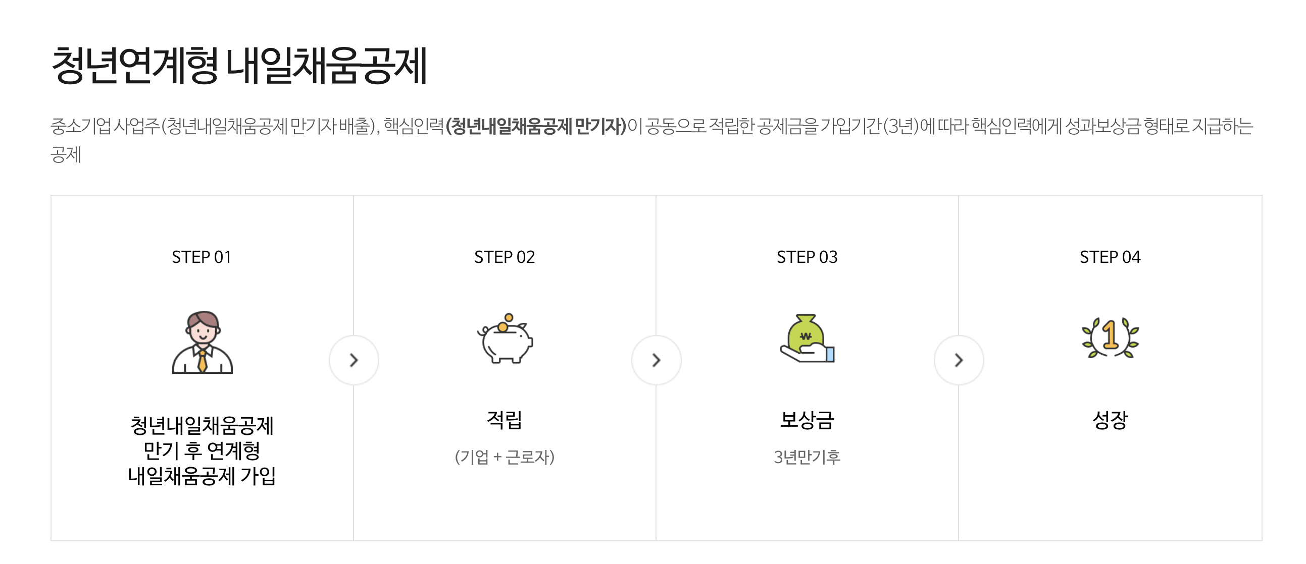 - 중도 퇴사 또는 기업이공제 탈퇴 시 공제금 환수 또는 페널티가 있을 수 있음