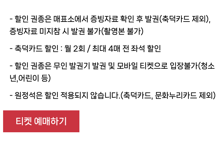 - 원정석은 할인 적용 제외(축덕카드·문화누리카드만 가능)