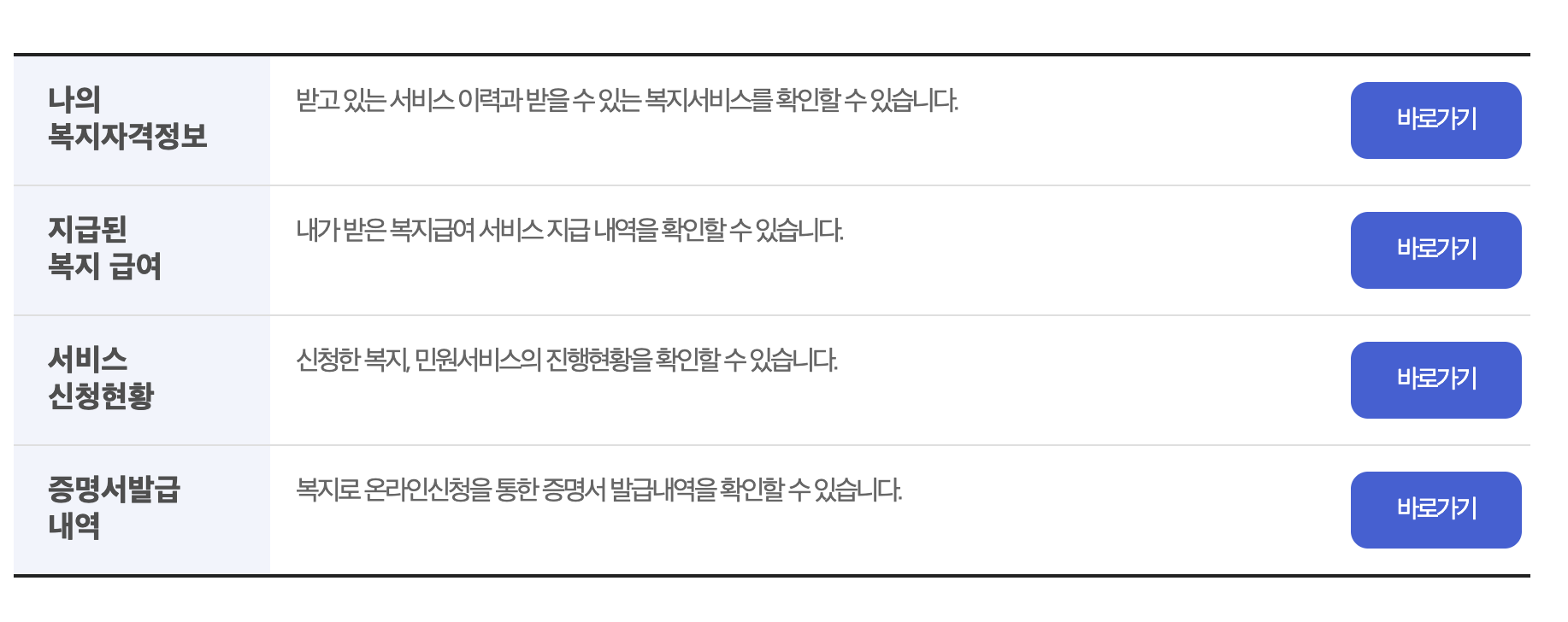 - 복지로 신청자: 복지지갑 → 서비스 신청현황에서 조회